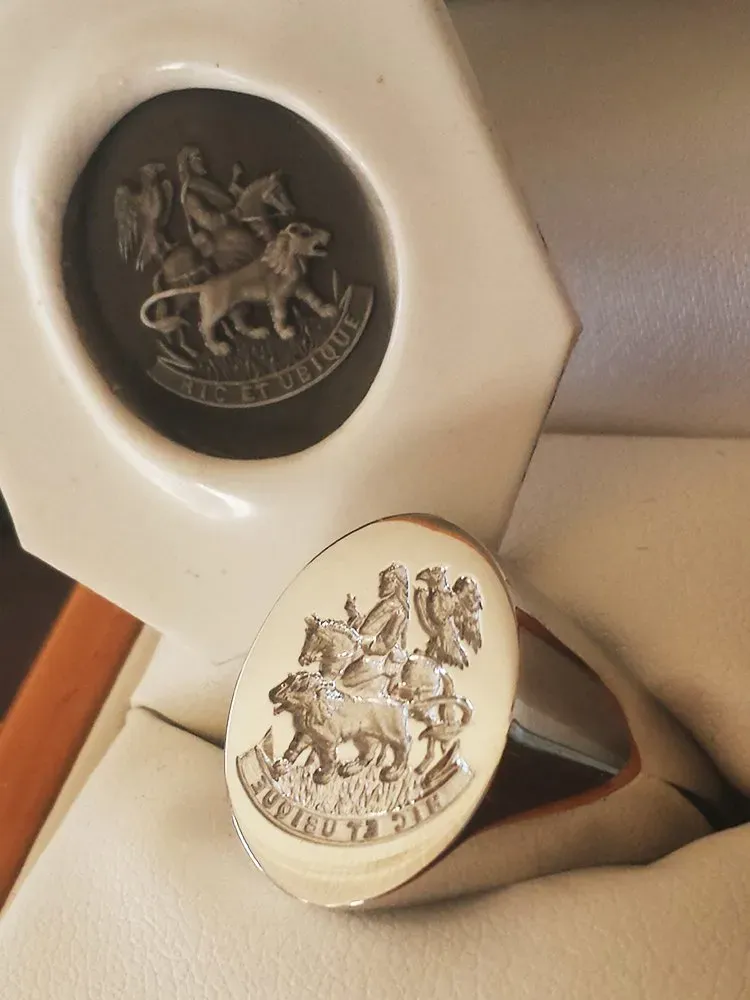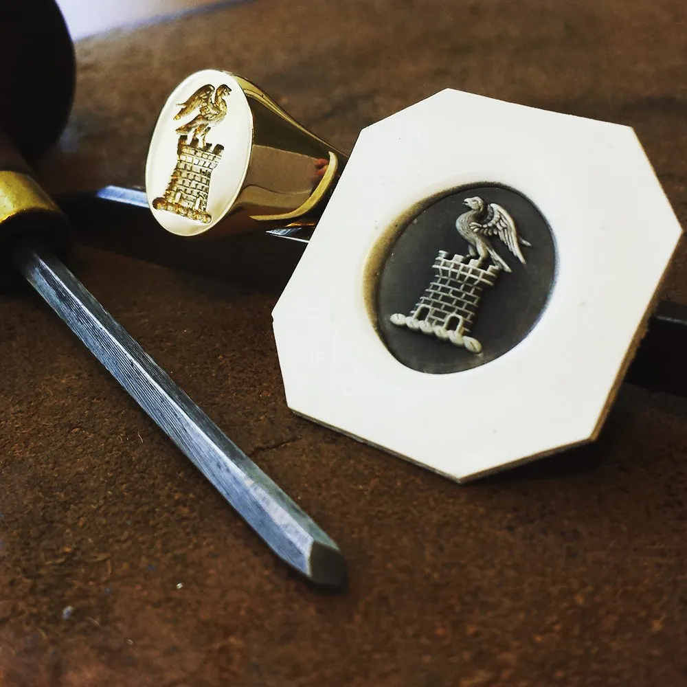 Recent work including coats of arms, clan crest’s, cyphers & monograms, unique special commissions, portrait’s and reverse seal signet ring engraving .